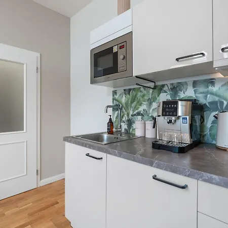 Apartament szczyci się lokalizacją w dzielnicy Smíchov, w centrum Pragi Najbliższy przystanek autobusowy Museum oddalony jest od obiektu o 100 metrów, a Náměstí Míru - w prawie 900 m. Rynek Staromiejski w Pradze leży w prawie 1,1 km stąd.